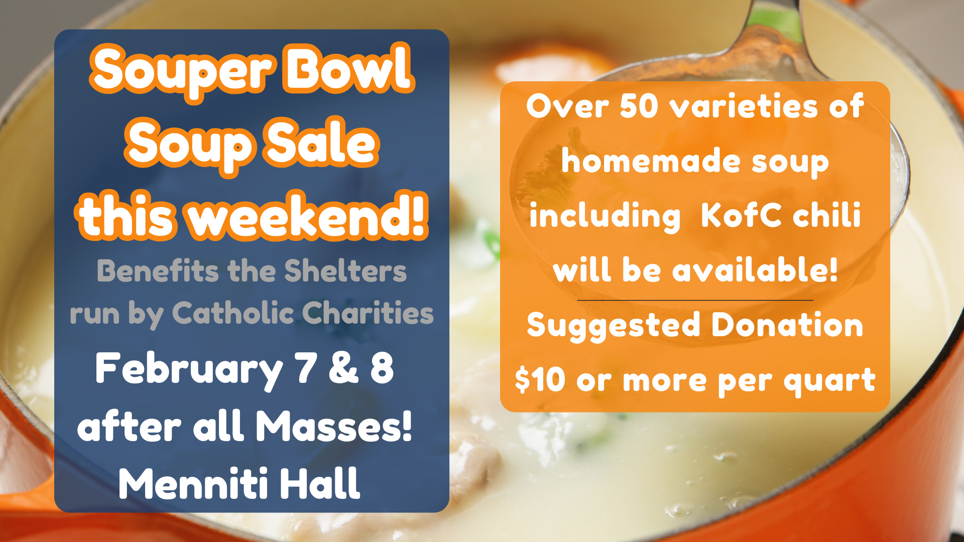 We have a very busy parish community! Check event information in our Friday Feed E-Newsletter, our bulletin and narthex monitors, or download the monthly calendar.